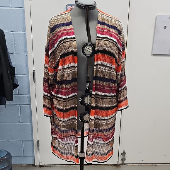 Colorful cardigan with bold stripes. Perfect for layering.