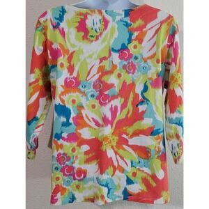 Ruby Rd. White Multi Color Abstract Print Top Small Rhinestones Soft Lightweight