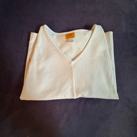 Elegant white top with a subtle textured pattern. Ideal for versatile styling.