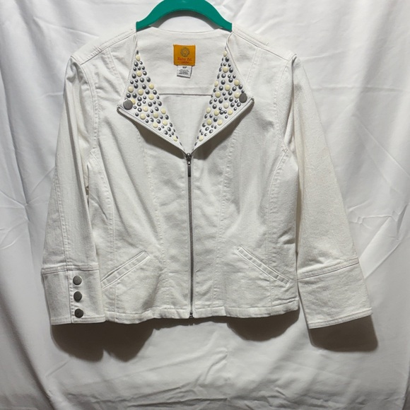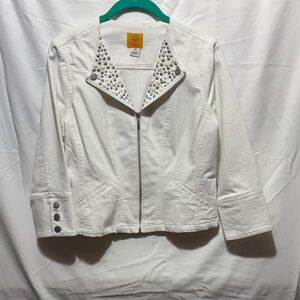 Ruby Rd. White Zip-Front Stud Collar Jean Jacket