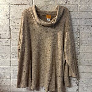 Ruby Rd. Woman 2X Beige Cowl Neck Sweater with Pearl Embellishments