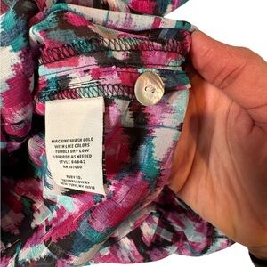 Ruby Rd. Woman Button Front Blouse 16W Multicolor Ikat Print Roll Tab Sleeve 148