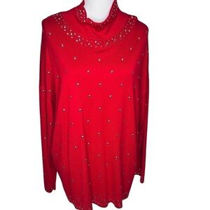 Ruby Rd. Woman Red Silver Embellished Mock Neck Long Sleeve Sweater Plus Size 2X