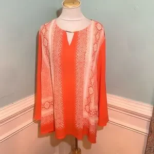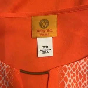 Ruby Rd. Woman Size 22W Orange and White Sheer Top
