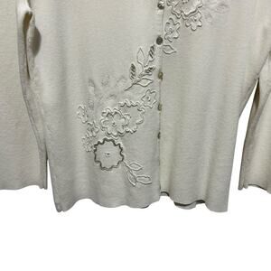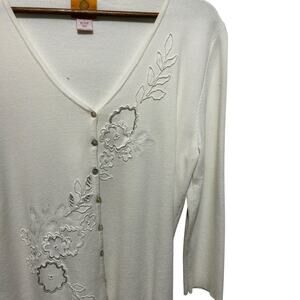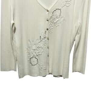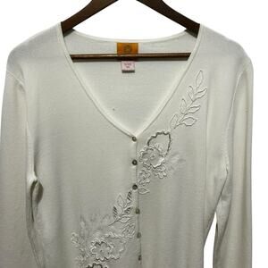 Ruby Rd Women Cardigan Sweater Ivory Embroidered Beaded Cottagecore Boho Classic