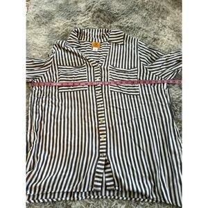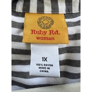 Ruby Rd Women’s 1X Top Striped Long Sleeve Roll Tab Sleeves Button Up