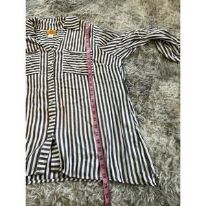 Ruby Rd Women’s 1X Top Striped Long Sleeve Roll Tab Sleeves Button Up Soft White Gray