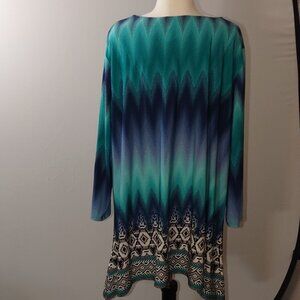 Ruby Rd. Women’s 3X Teal & Blue Zigzag Tunic With Scoop Neck & Accents