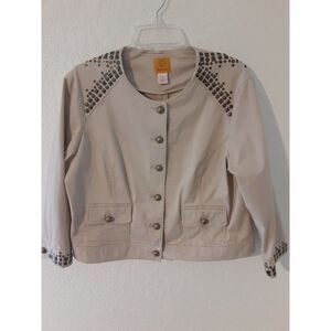 Ruby Rd Womens Beige Jacket Size 16 Gold Studs Denim Button Front