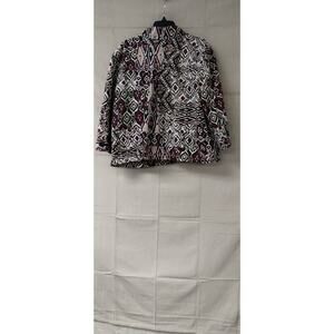 Ruby Rd Womens Blazer Jacket Button Down 3/4 Sleeve Argyle Diamond Multicolor 16
