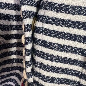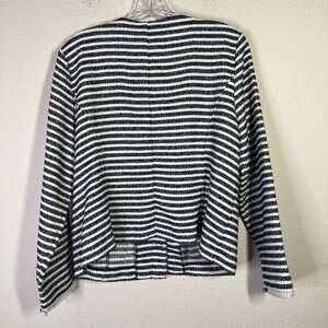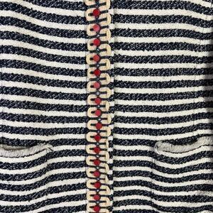 Ruby Rd Women's Blue White Nautical Striped Textured Tweed Blazer Jacket Size 12