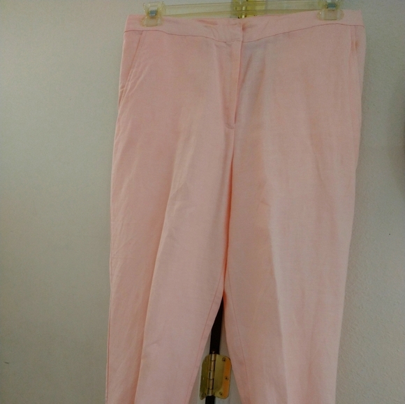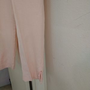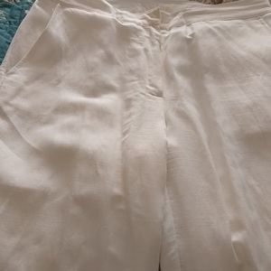 Ladies Pre-owned Light Pink, and White Capris Pants. They both are in Great conditions. Elastic waist to the sides.. Side Pockets. Lovely stitched on appliques to the side seam with slits at the bottom of the pants. It is also available in White. The Pink is size 10 and the White is size 8. The white is lined inside.