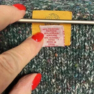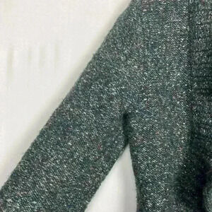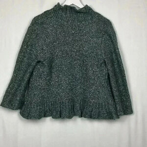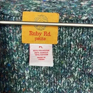 Ruby Rd Womens Cardigan PL Marled Blue White Red Open Ruffle Front 3/4 Sleeves Ruffle Hemline Tight Knit Colorful Fun Versatile EUC