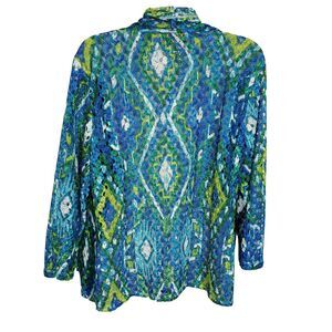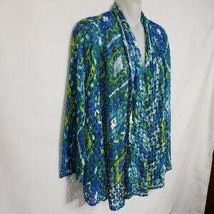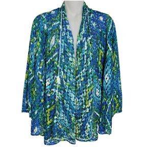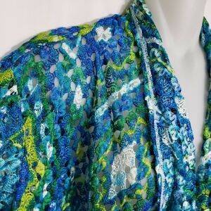 Ruby Rd Womens Cardigan Medium Open Front Teal Multi Colored Crochet Open Knit