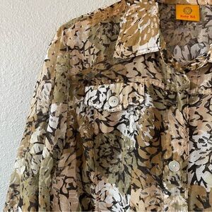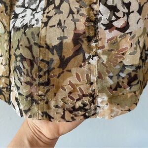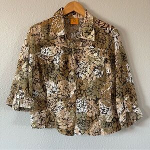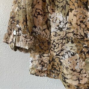 Ruby Rd Women's Cream Green Brown Camo Floral Print Button Down 3/4 Sleeve Top