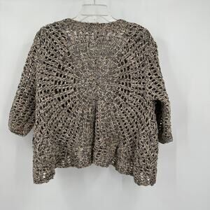 Ruby Rd Womens Crocheted Open Front Cardigan Size L Beige Boxy Boho Heavy Chunky