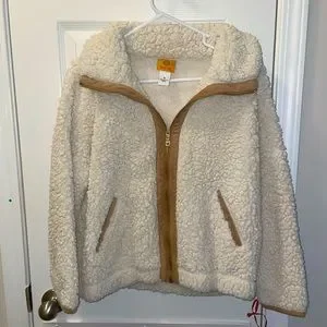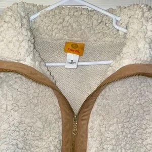 Ruby Rd. Women’s Jacket. Size small. Has a Sherpa outside texture with beautiful suede like accents. This jacket has pockets on both lower front sides and a gold zipper. This jacket is new and has never been worn. However, the paper tag is no longer attached. Pictured is where tag was before being removed.