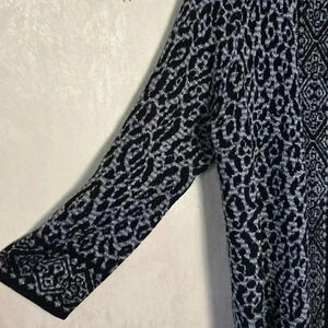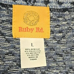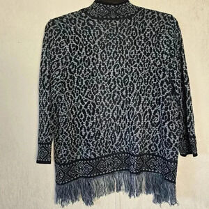 Ruby Rd Womens Large Leopard Fringe Blue Metallic Silver Thread Cardigan Sweater