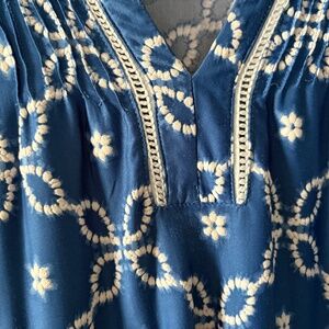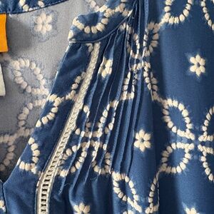 Look no further! This stunning top combines beautiful blue & white puff print for a unique and eye-catching look. The collared split neckline adds a touch of sophistication, while the flattering 3/4 sleeves and subtle sharkbite hemline ensure a comfortable fit for all body types.