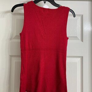 Very pretty red sleeveless sweater in excellent condition. The stone embellishments really make this pop! Size Small. Material is rayon and nylon. Smoke free/pet free home.