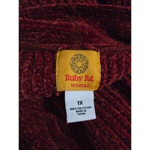 Ruby Rd. Womens Red Velvet Open Front Cardigan Sweater Plus Size 1X Soft Comfy