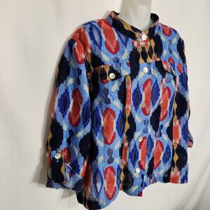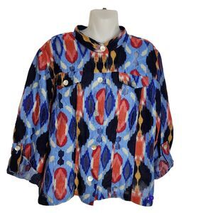 Ruby Rd. Womens Shirt Jacket 18 Linen Blend Lightweight Roll Tab Sleeve Button