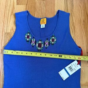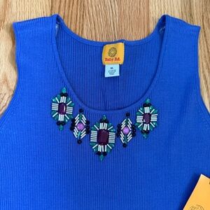 This Ruby Rd. Tank Top Is A BEAUTIFUL Shade Of Blue, Ribbed, & Has GORGEOUS Aztec Beaded Detail On Neck!