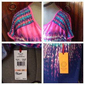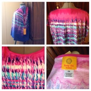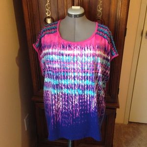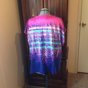 Beautiful Batik Chic, 62 percent polyester, 33 percent rayon, and 5 percent spandex multi color s/s top. The colors are so vibrant! This top is brand new, never been worn, and still has the original tag on it.