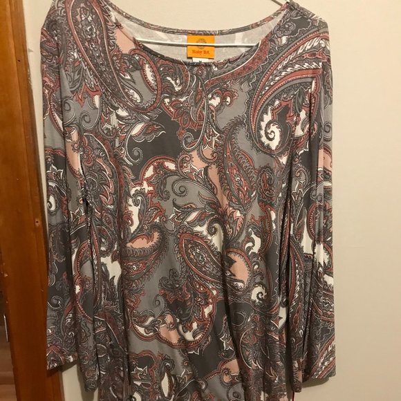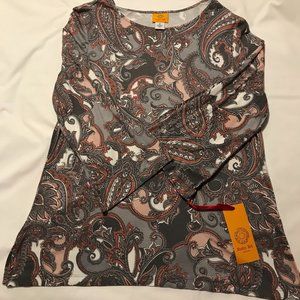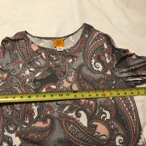 Women's pullover top. Never worn, new with tags, from smoke free and pet free home. Colors are dark & light gray with some light pink and mauve. Welcome questions! Thanks for looking!