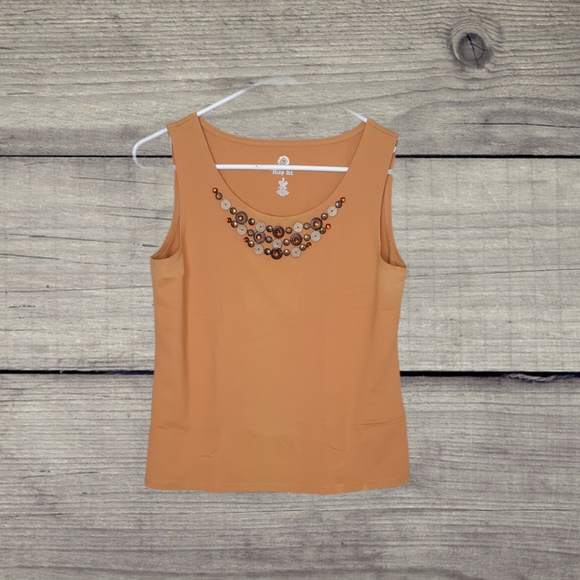Ruby Road Women's Tunic With Beading 92% Nylon 8% Spandex, Color Burnt Orange, Pit to Pit 17" Length 21" (A-17)