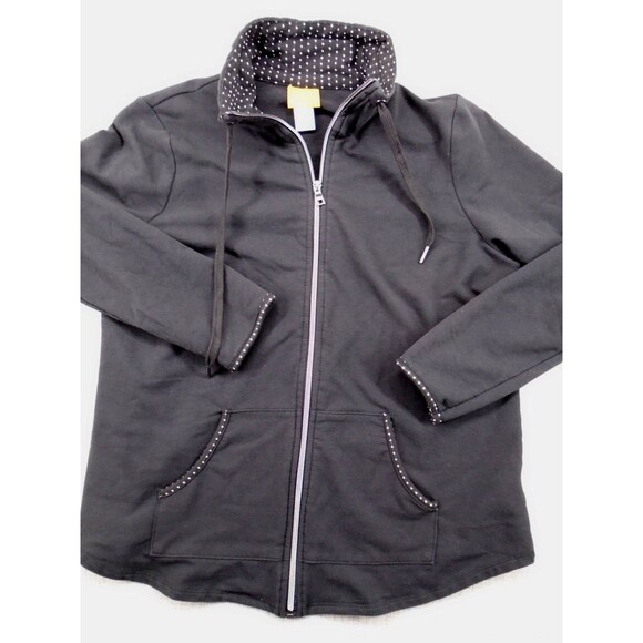 Ruby Rd. Women's Zipper Sweater Size Medium Black Thin w/ Drawstring