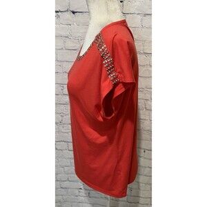 Ruby Rd. Women's short Sleeve Shirt Jeweled Neckline petite medium