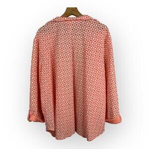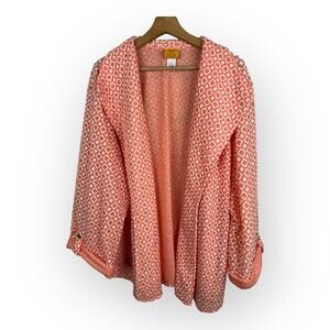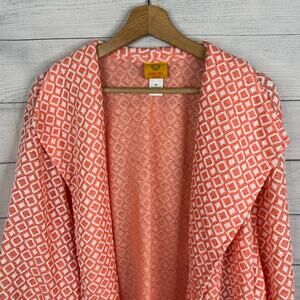Ruby Rd Womens size 3X Diamond Print Collared Open Cardigan Coral