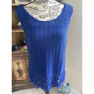 Ruby Rd Woven Blue Frilled Fringe Tassled Tank Top NWT