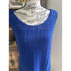Ruby Rd Woven Blue Frilled Fringe Tassled Tank Top NWT size Petite Large