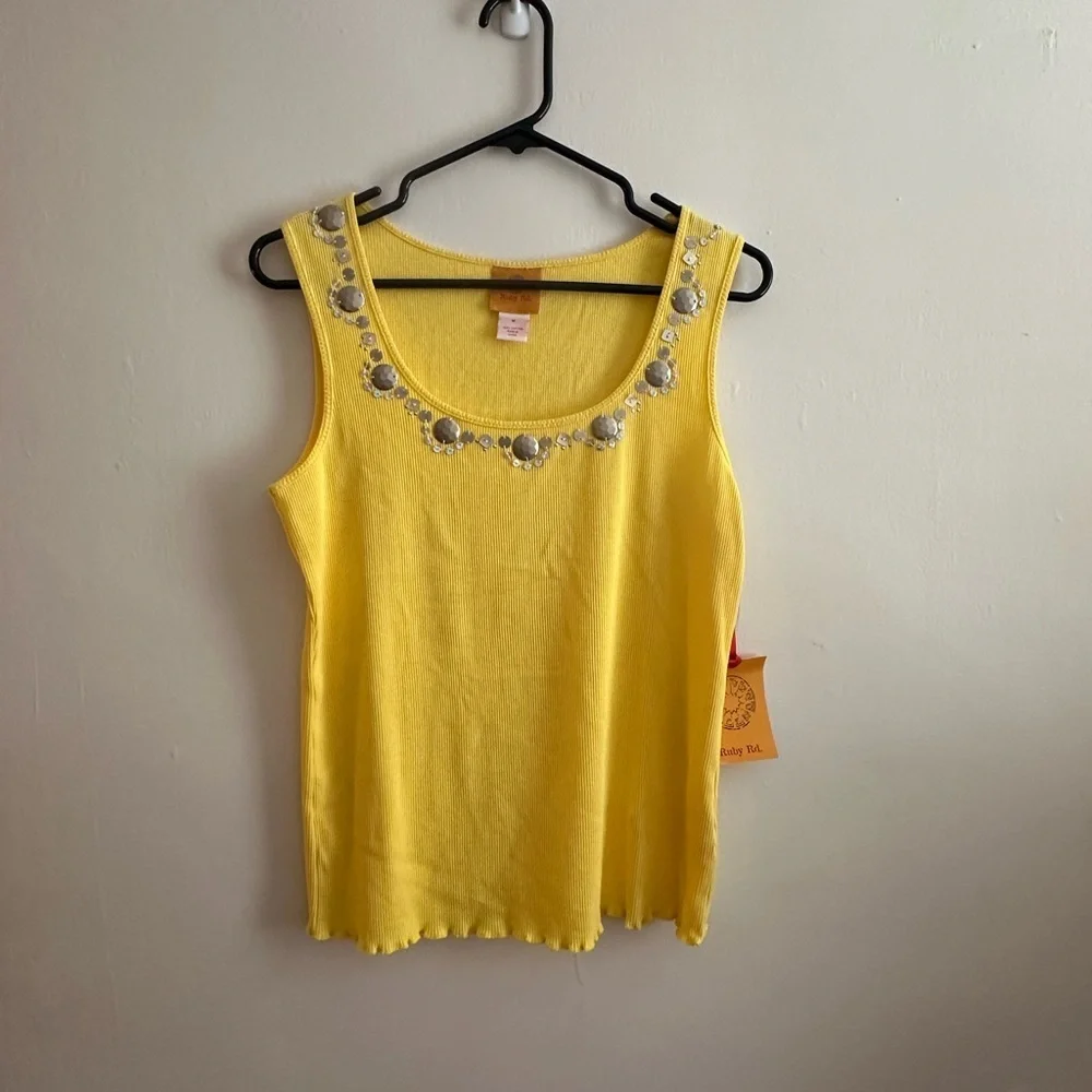 Ruby Rd. Yellow Embellished Tank Top