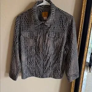 This is a Ruby Rd. women's gray textured snake or animal print jacket.