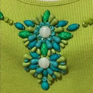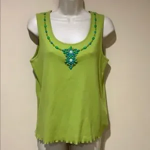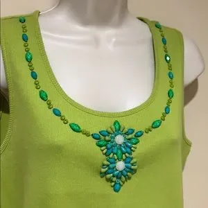 Standard ribbed tank top, but adorned with gorgeous beads and dainty hemline. Bust flat 17” stretching to approx 27”. length 22” TPL50