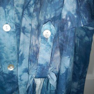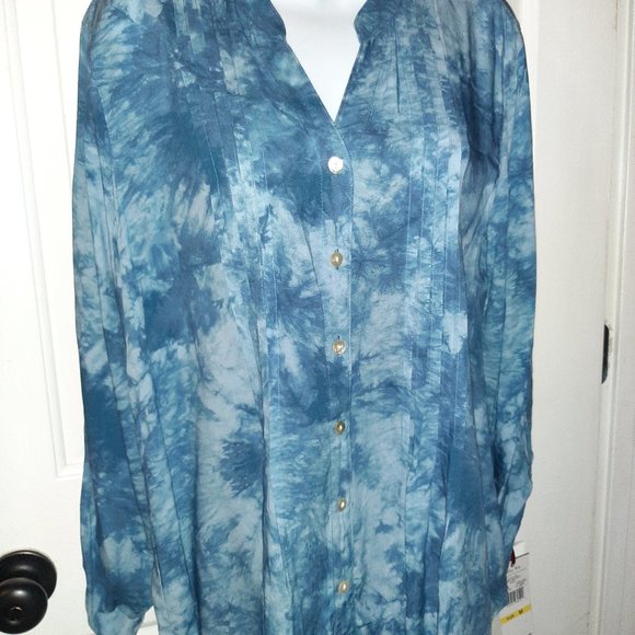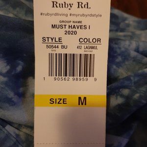 NWT Blue and white Ruby Rd blouse, button down with roll tab sleeves