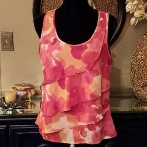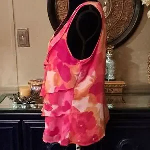 Ruby Rd. watercolor blose with ruffle front. Great condition. 20" armpit to armpit without stretching laying flat.