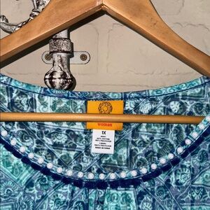 Ruby Rd blouse under shirt cami tank attached semi sheer top tassel trim 1X NEW