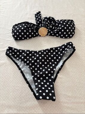 Excellent condition— no holes, stains, or pilling. It has a lace back and the material on the sides and shoulders is see-through. It is 100% polyester
