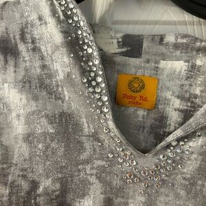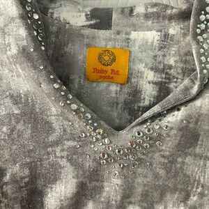 No size tag inside but guessing fit/me it’s a L, also a petite/per tag- so size is LP best guess