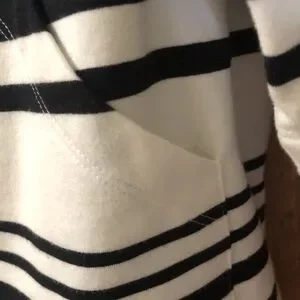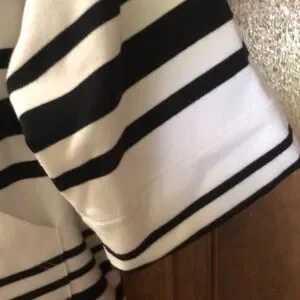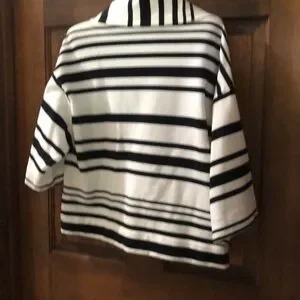 Extra wide sleeves. Short sleeves. 2 lg pockets. 4% spandex!Excellent condition! Wore just a few times!