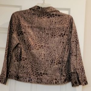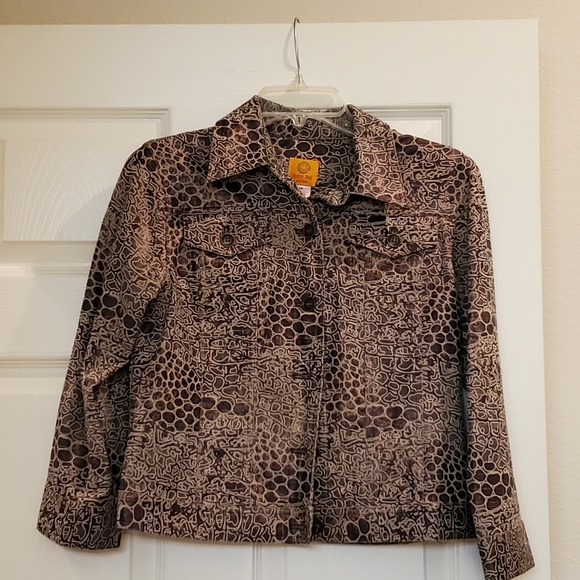 Ruby Rd jacket, 8 petite. Brown multi colored print. Structured jean jacket style. In great condition.