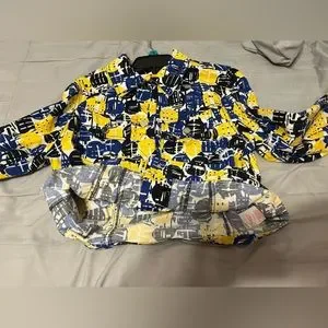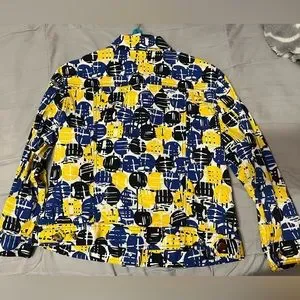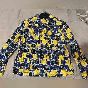 It’s a ruby rd Jean jacket preowned black blue yellow jean jacket. Fits size small