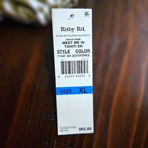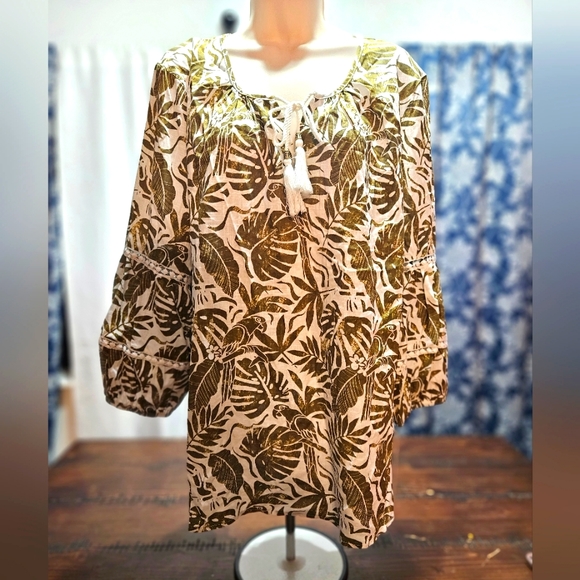 Meet me in Tahiti, Ruby rd. leaf print Top. size XL.