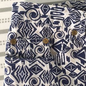 Lightweight 97% cotton 3% spandex blue and white capris. Like new! Very stylish