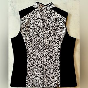 Ruby Rd cotton/spandex vest in very good condition,flattering black with leopard print insert on back and front