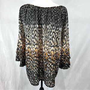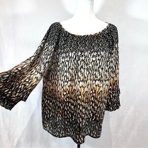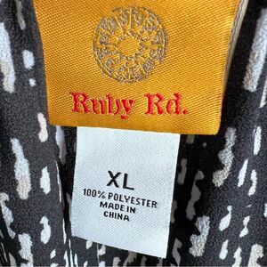Ruby Rd long layered sleeve black and brown tones abstract print top size XL